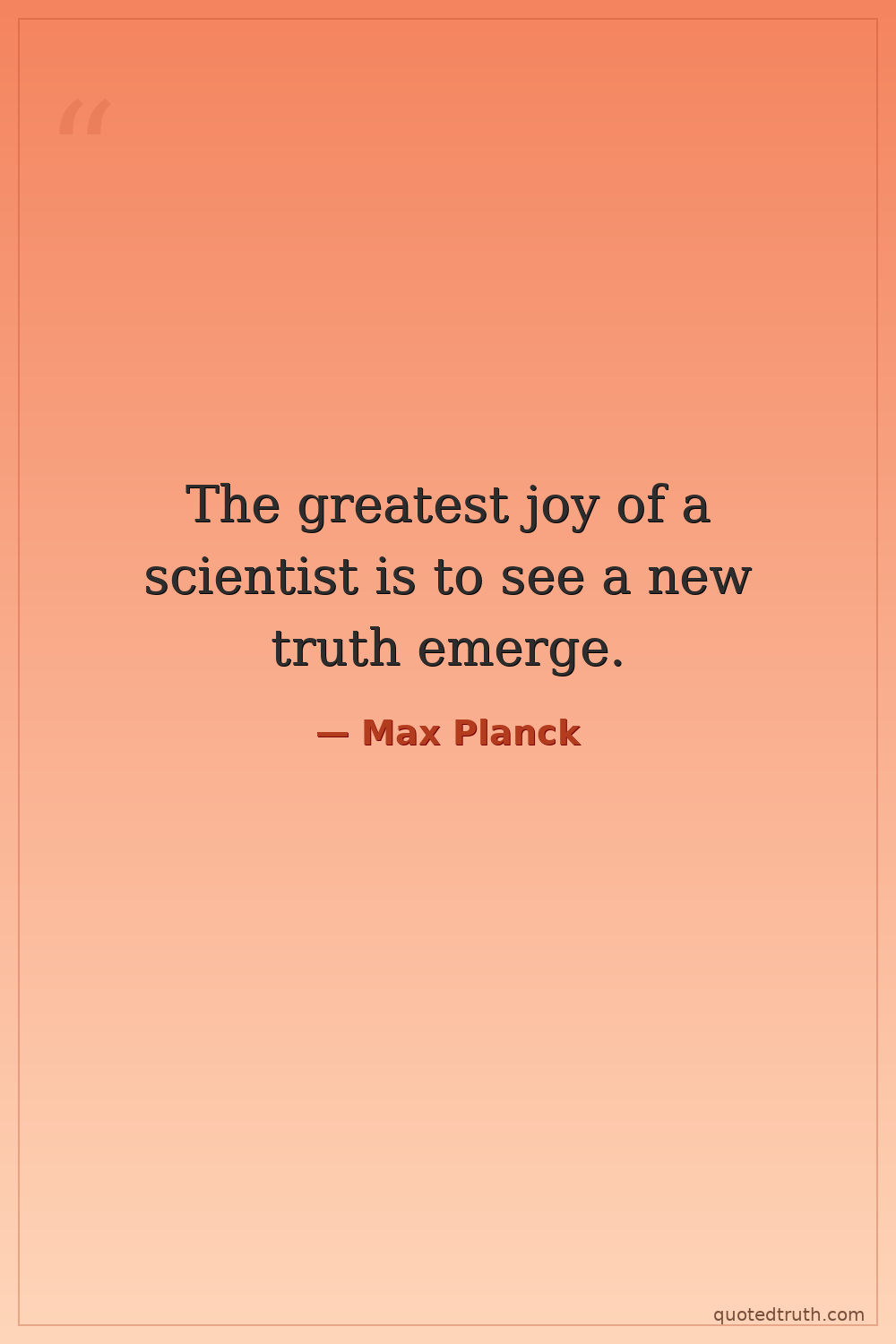 The greatest joy of a scientist is to see a new truth emerge.
