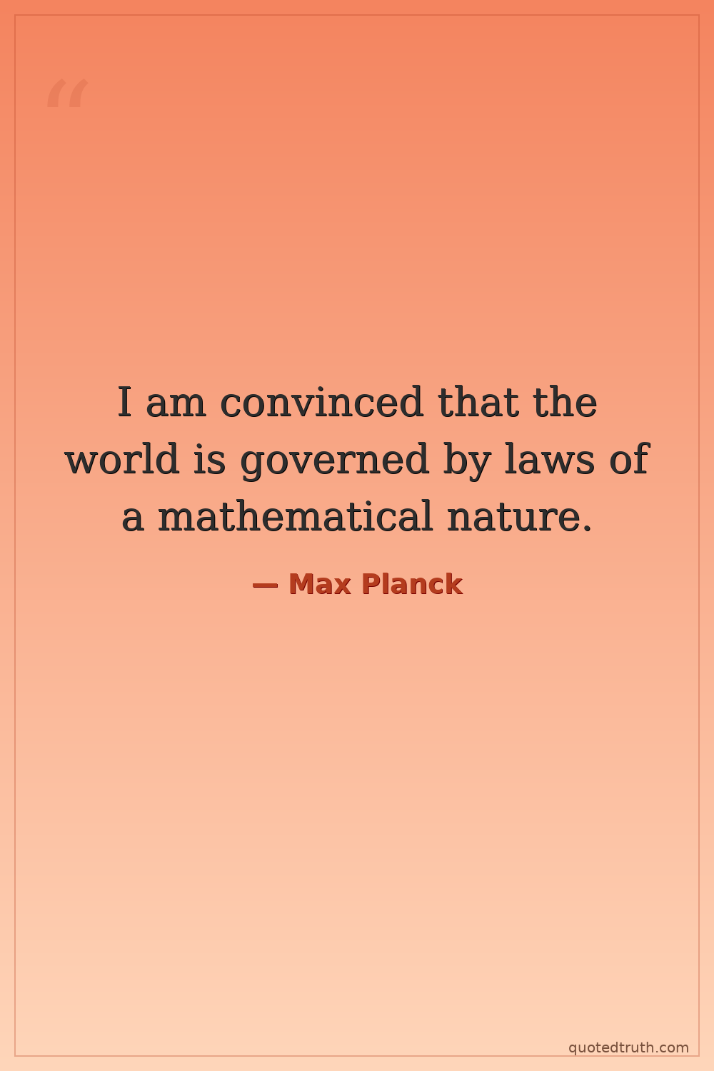 I am convinced that the world is governed by laws of a mathematical nature.
