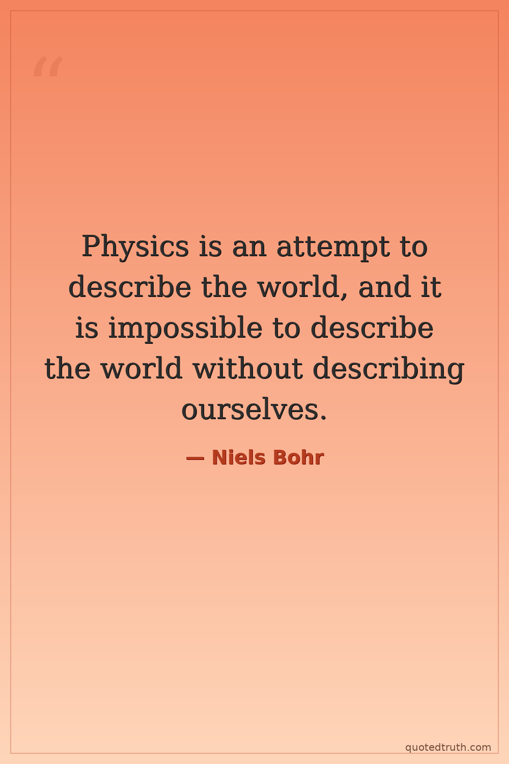 Physics is an attempt to describe the world, and it is impossible to describe the world without describing ourselves.