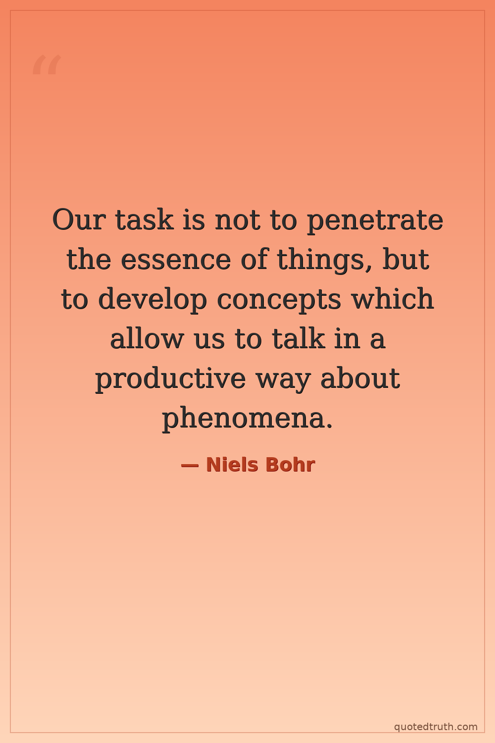 Our task is not to penetrate the essence of things, but to develop concepts which allow us to talk in a productive way about phenomena.