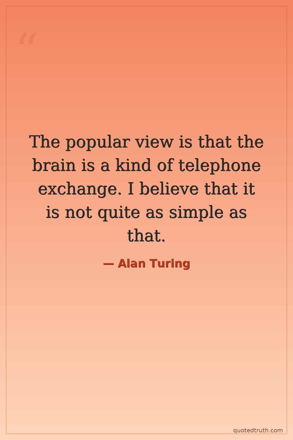 "If it is accepted that real brains, as found in animals, and in particular in men, are a sort of machine it will follow that our digital computer suitably programmed, will behave like a brain..."
