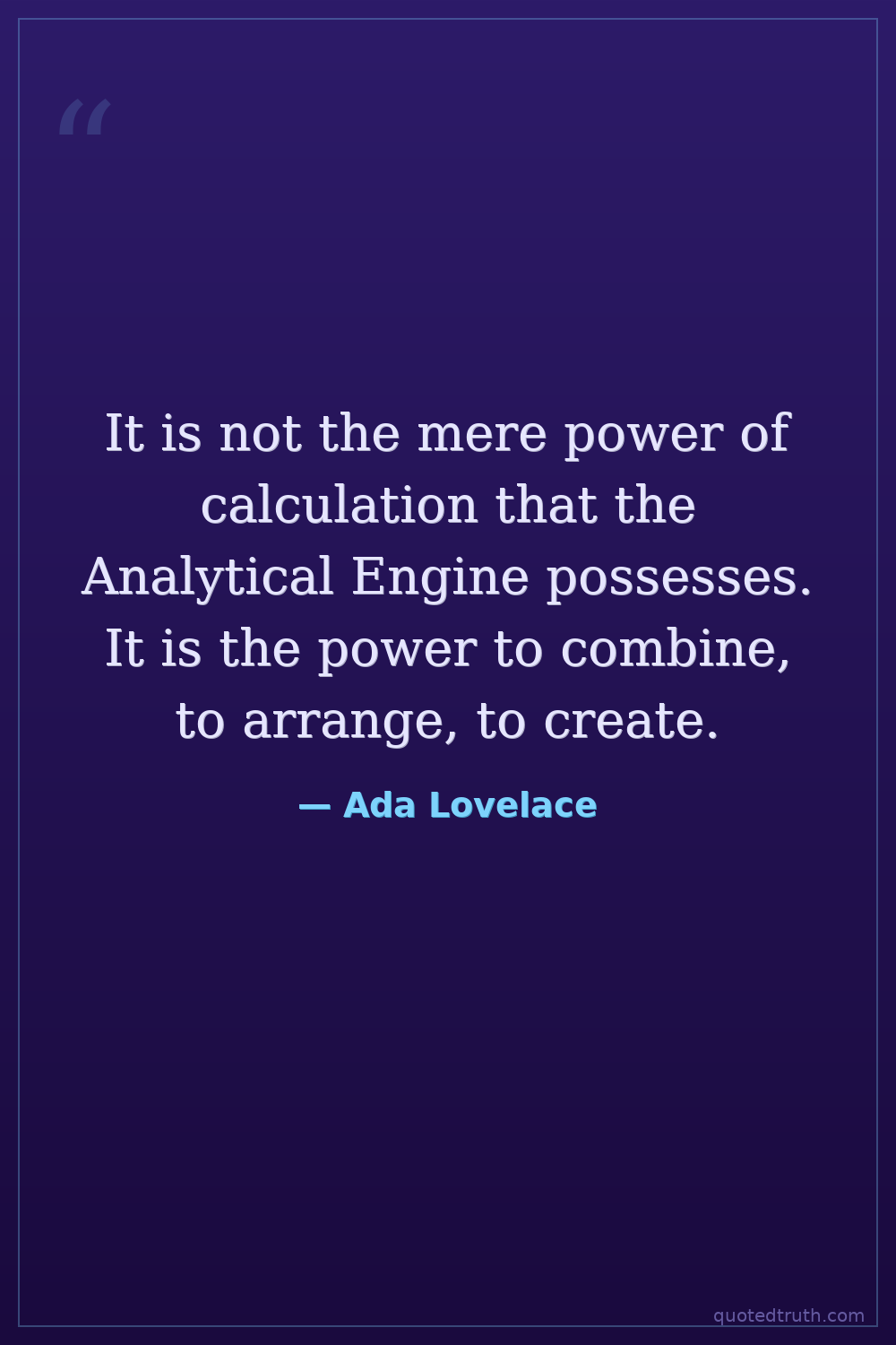 It is not the mere power of calculation that the Analytical Engine possesses. It is the power to combine, to arrange, to create.