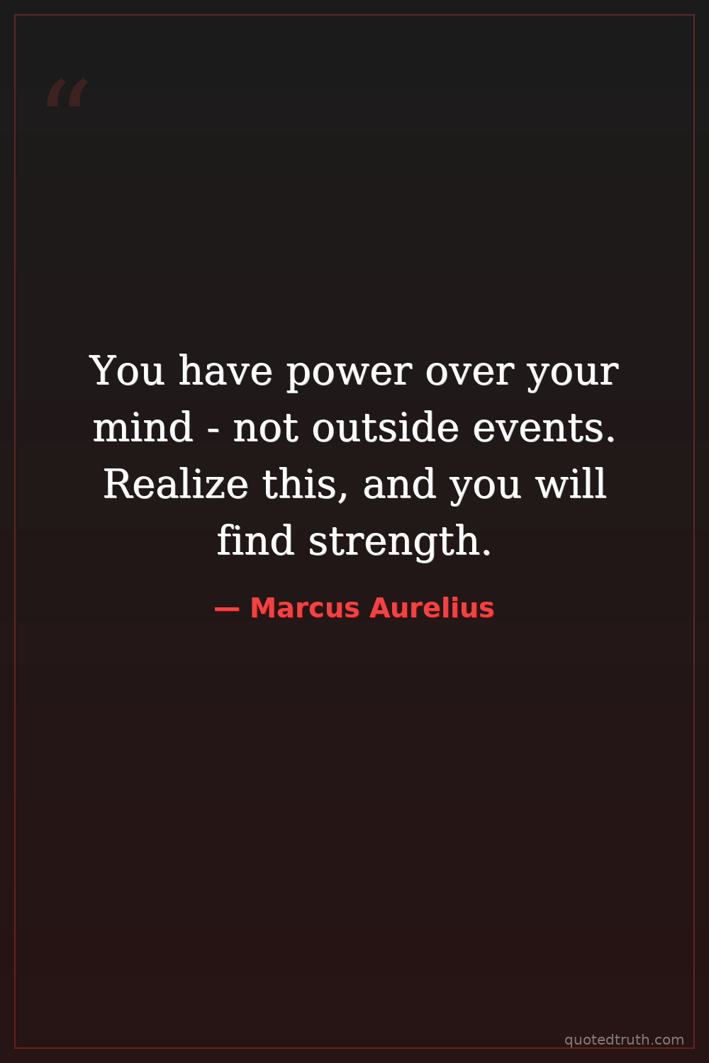 You have power over your mind - not outside events. Realize this, and you will find strength.