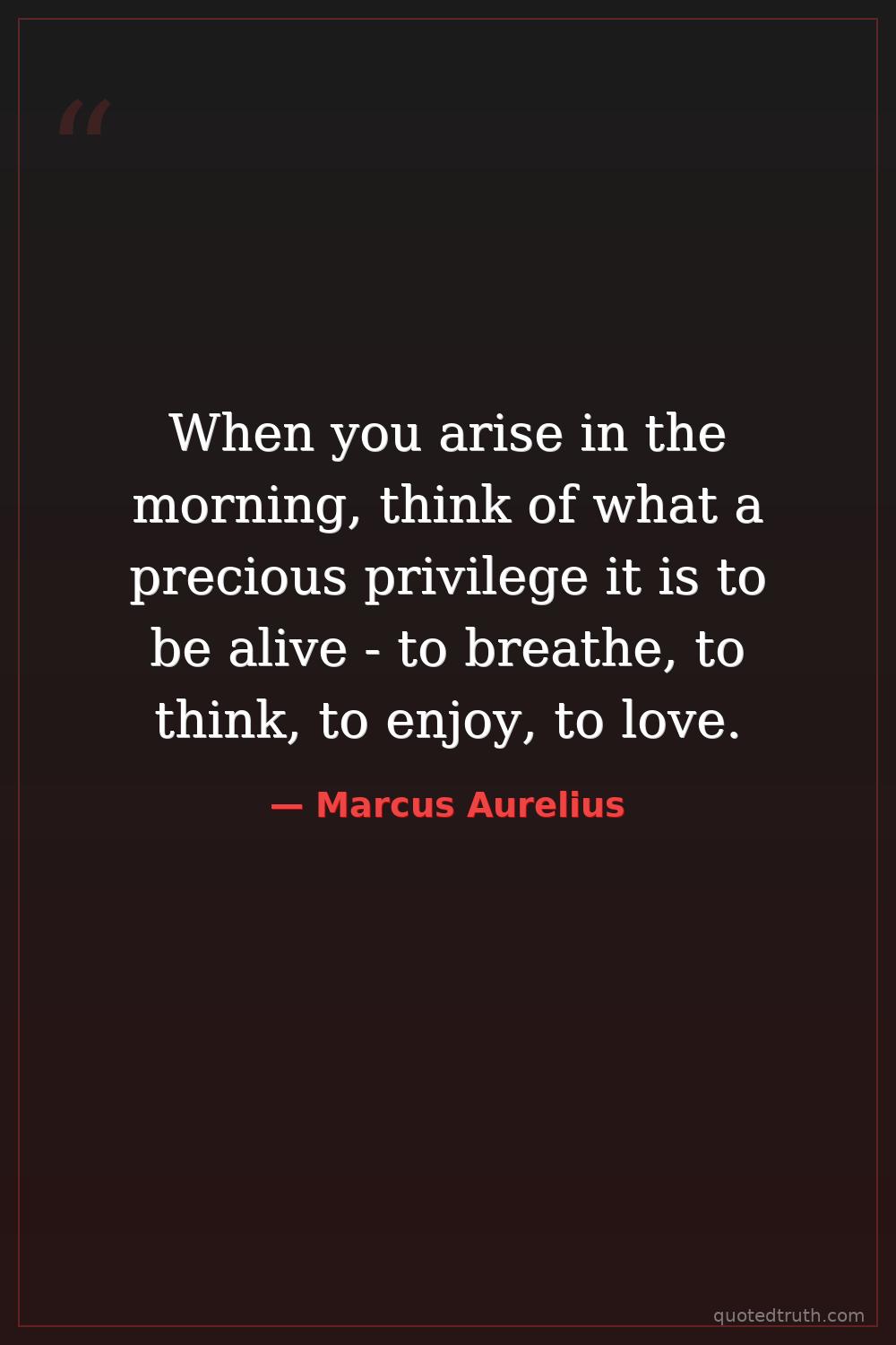 When you arise in the morning, think of what a precious privilege it is to be alive - to breathe, to think, to enjoy, to love.