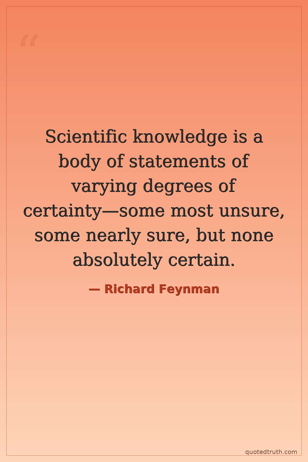 Scientific knowledge is a body of statements of varying degrees of certainty—some most unsure, some nearly sure, but none absolutely certain.