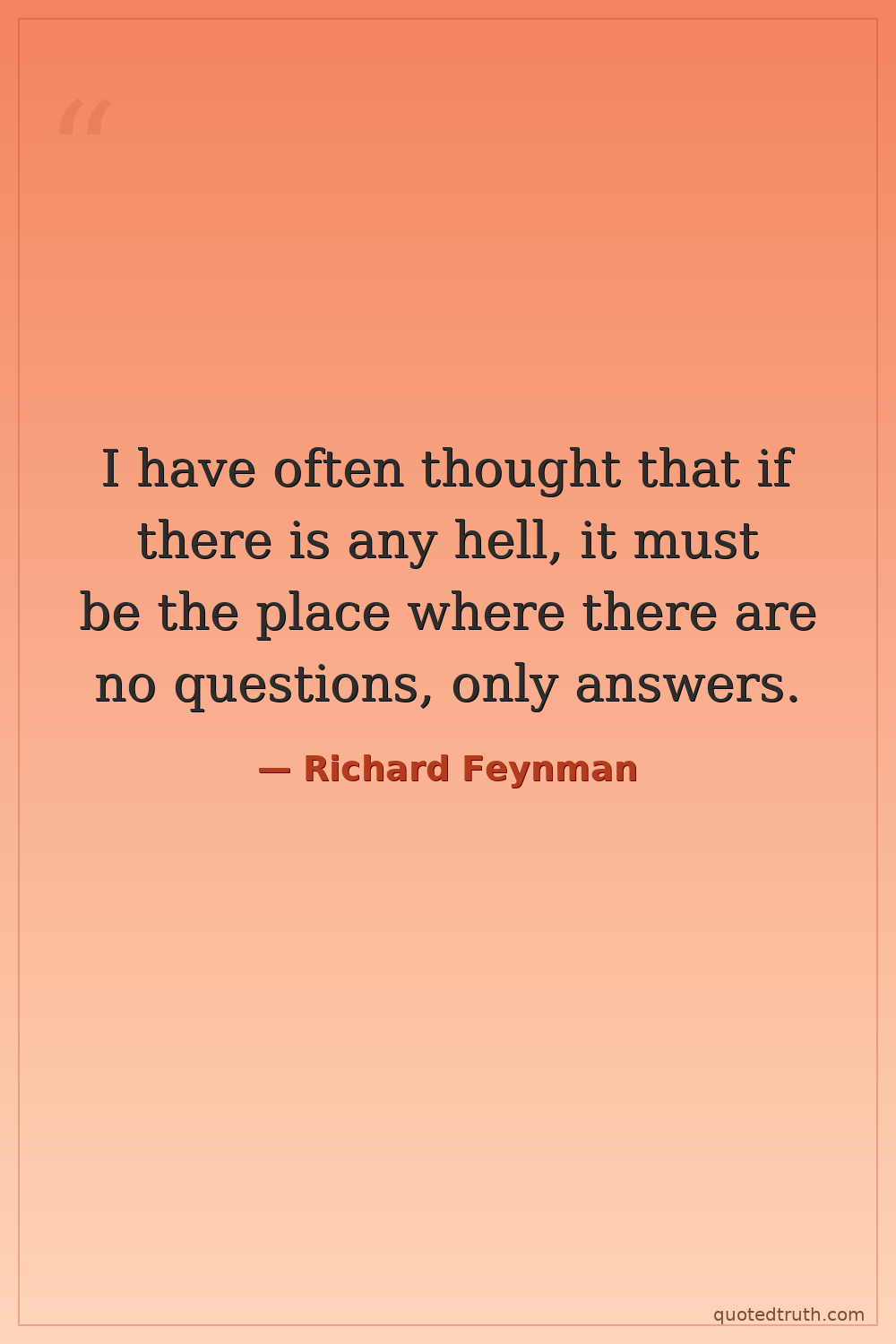 I have often thought that if there is any hell, it must be the place where there are no questions, only answers.