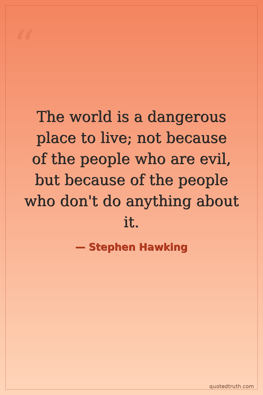 The world is a dangerous place to live; not because of the people who are evil, but because of the people who don't do anything about it.
