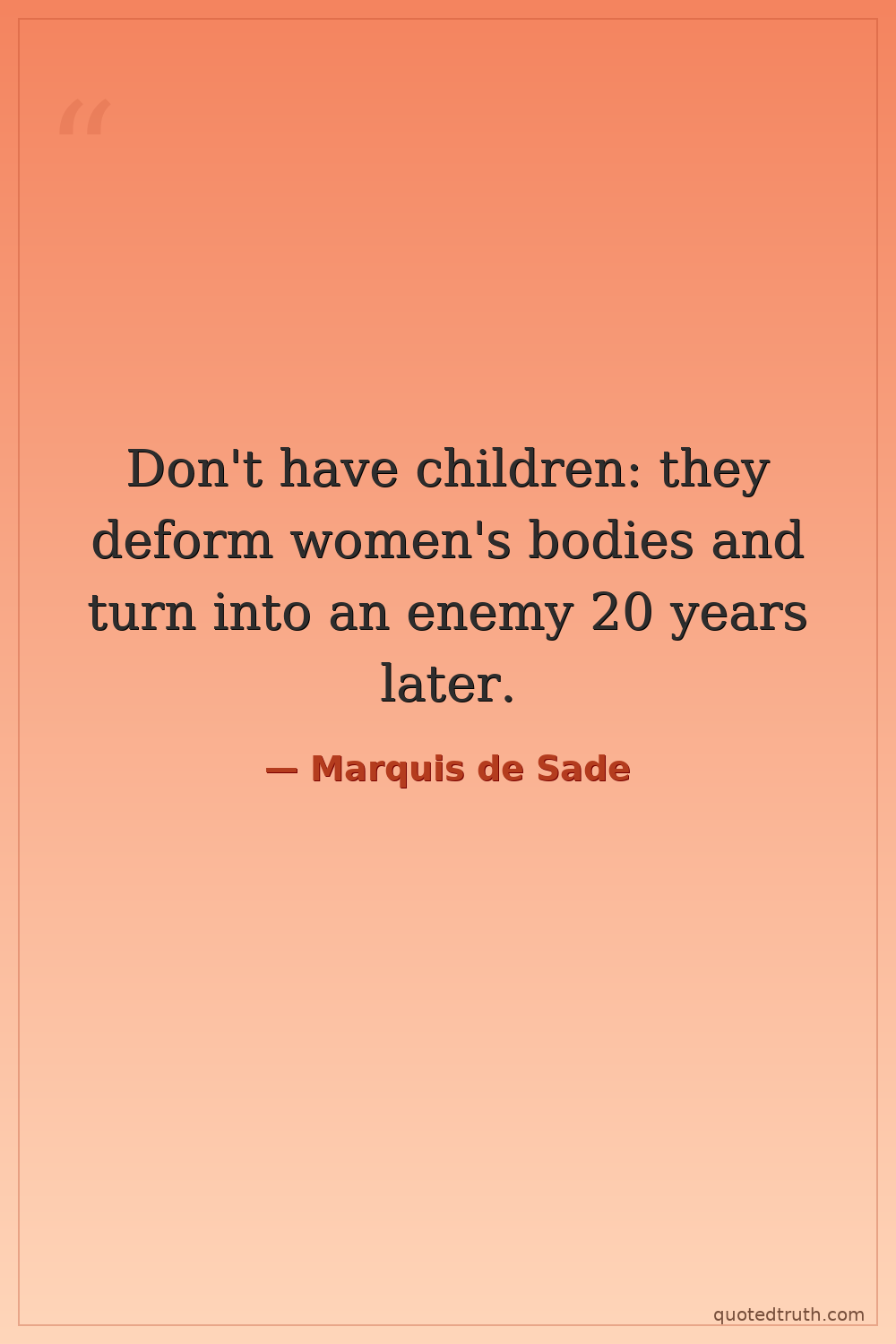 Don't have children: they deform women's bodies and turn into an enemy 20 years later.