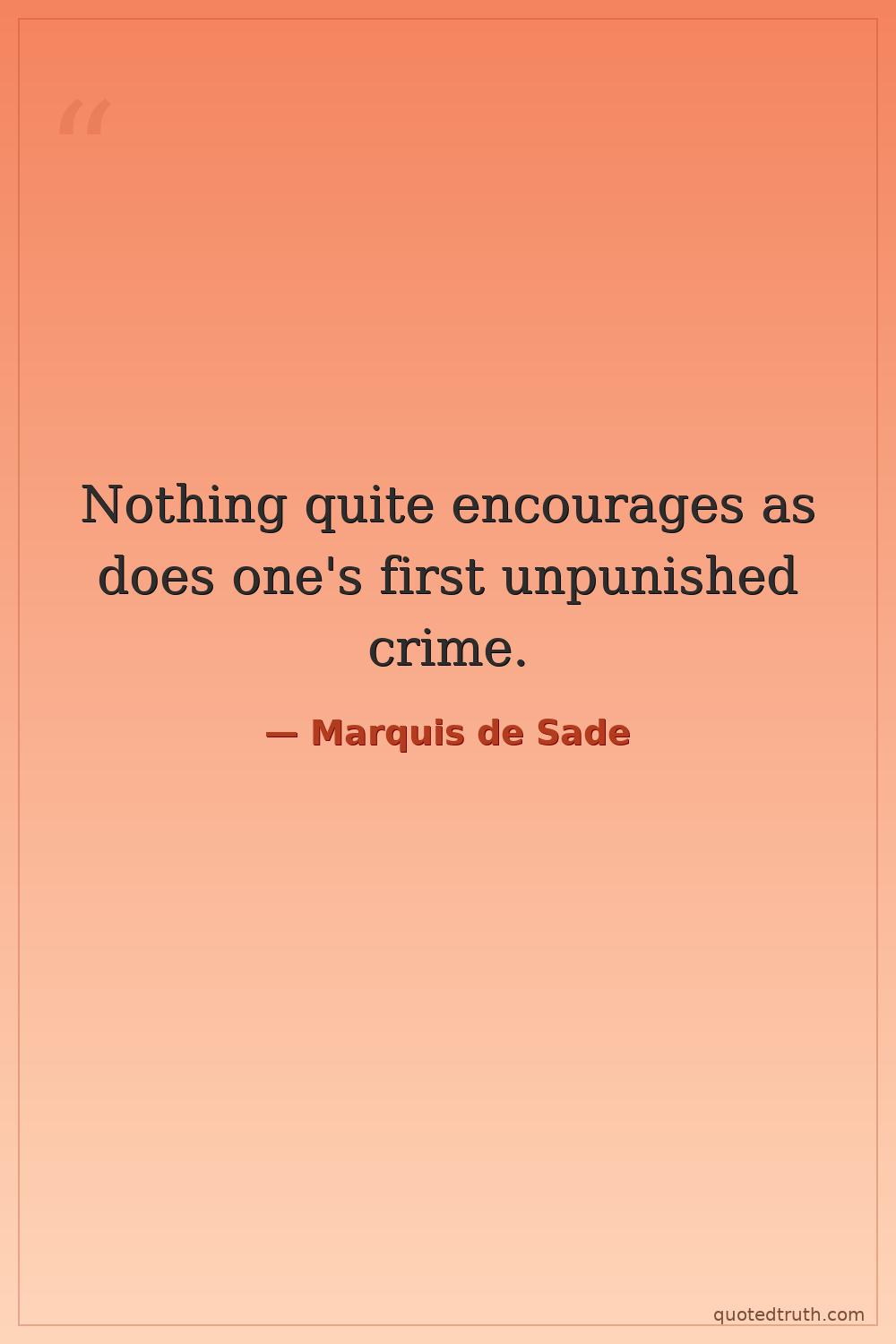 "Crime is the soul of lust. What would pleasure be if it were not accompanied by crime? It is not the object of debauchery that excites us, rather the idea of evil."