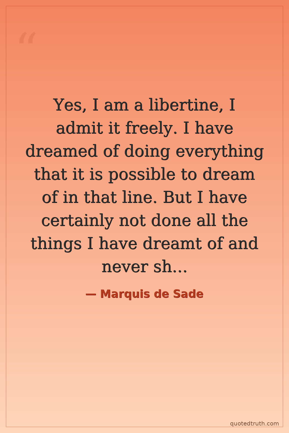 Yes, I am a libertine, I admit it freely. I have dreamed of doing everything that it is possible to dream of in that line. But I have certainly not done all the things I have dreamt of and never shall. Libertine I may be, but I am not a criminal, I am not a murderer.