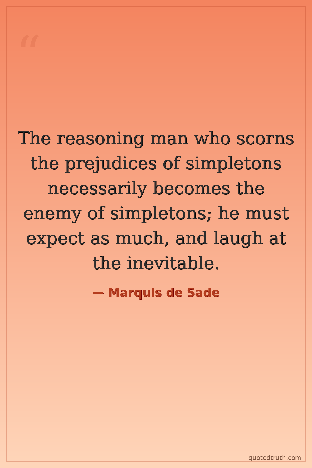 The reasoning man who scorns the prejudices of simpletons necessarily becomes the enemy of simpletons; he must expect as much, and laugh at the inevitable.