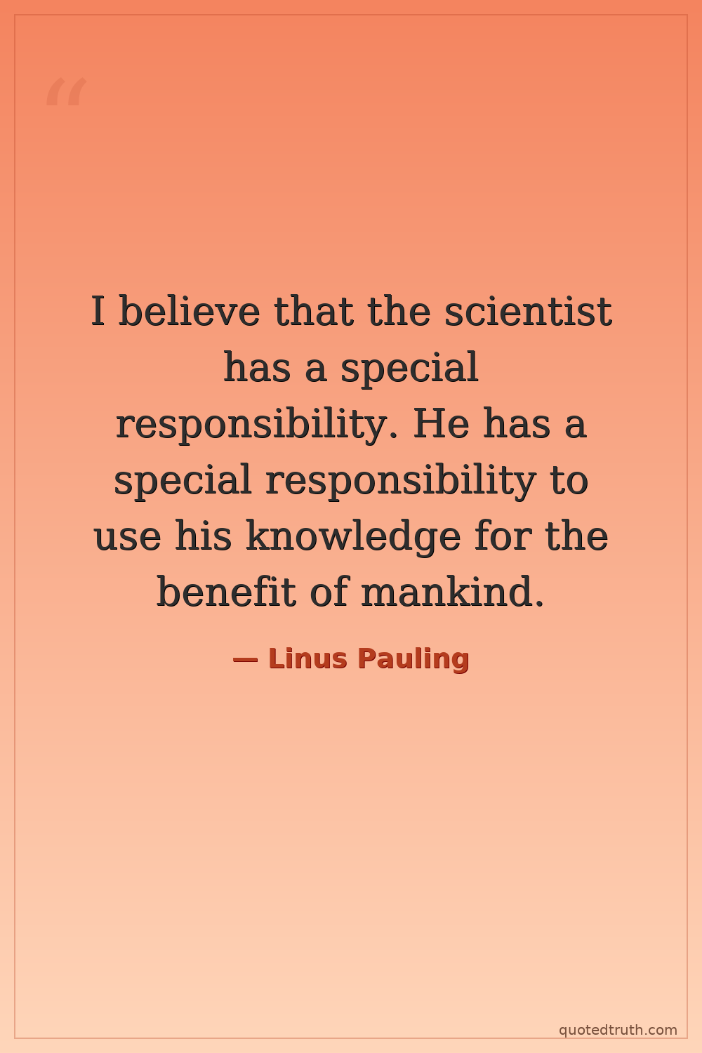 I believe that the scientist has a special responsibility. He has a special responsibility to use his knowledge for the benefit of mankind.