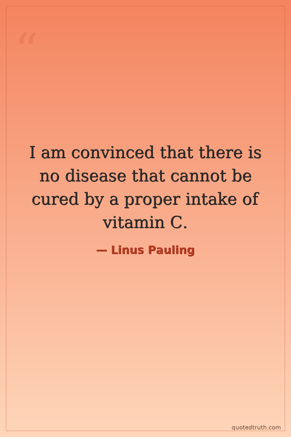 I am convinced that there is no disease that cannot be cured by a proper intake of vitamin C.