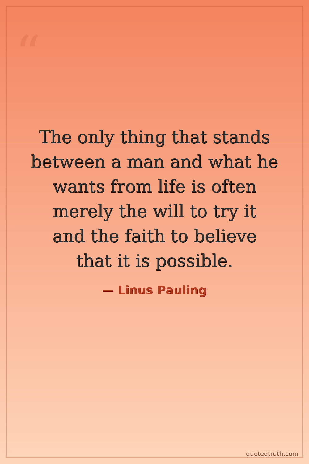 The only thing that stands between a man and what he wants from life is often merely the will to try it and the faith to believe that it is possible.