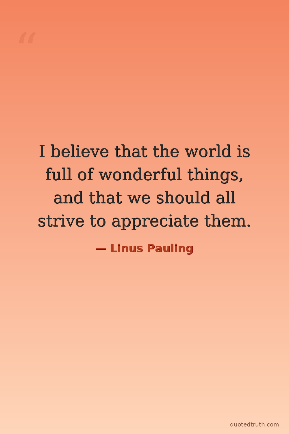 I believe that the world is full of wonderful things, and that we should all strive to appreciate them.