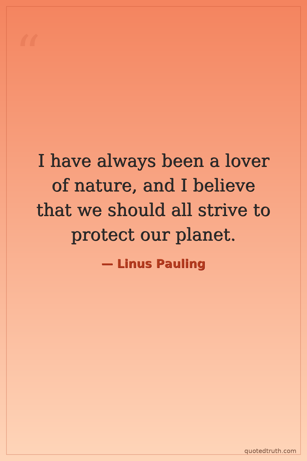 I have always been a lover of nature, and I believe that we should all strive to protect our planet.