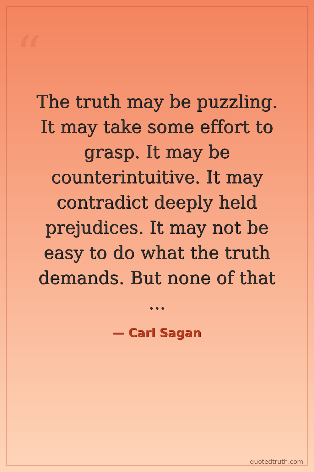 The truth may be puzzling. It may take some effort to grasp. It may be counterintuitive. It may contradict deeply held prejudices. It may not be easy to do what the truth demands. But none of that makes it false.