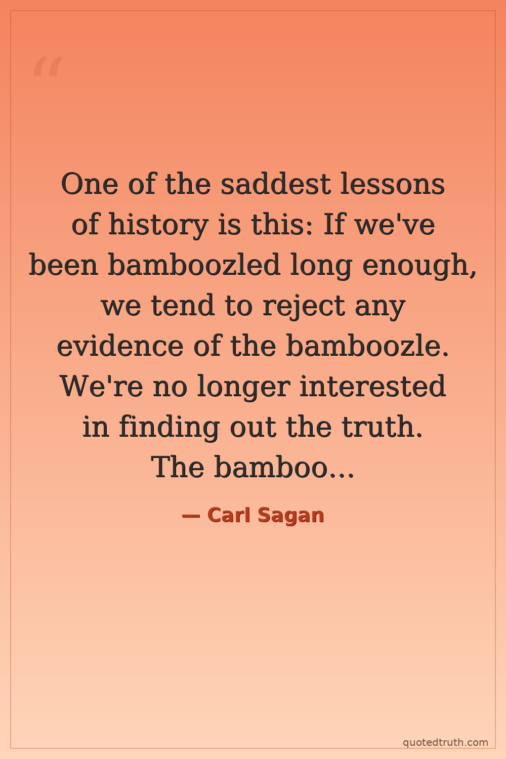 One of the saddest lessons of history is this: If we've been bamboozled long enough, we tend to reject any evidence of the bamboozle. We're no longer interested in finding out the truth. The bamboozle has captured us. It's simply too painful to acknowledge, even to ourselves, that we've been taken. Once you give a charlatan power over you, you almost never get it back.