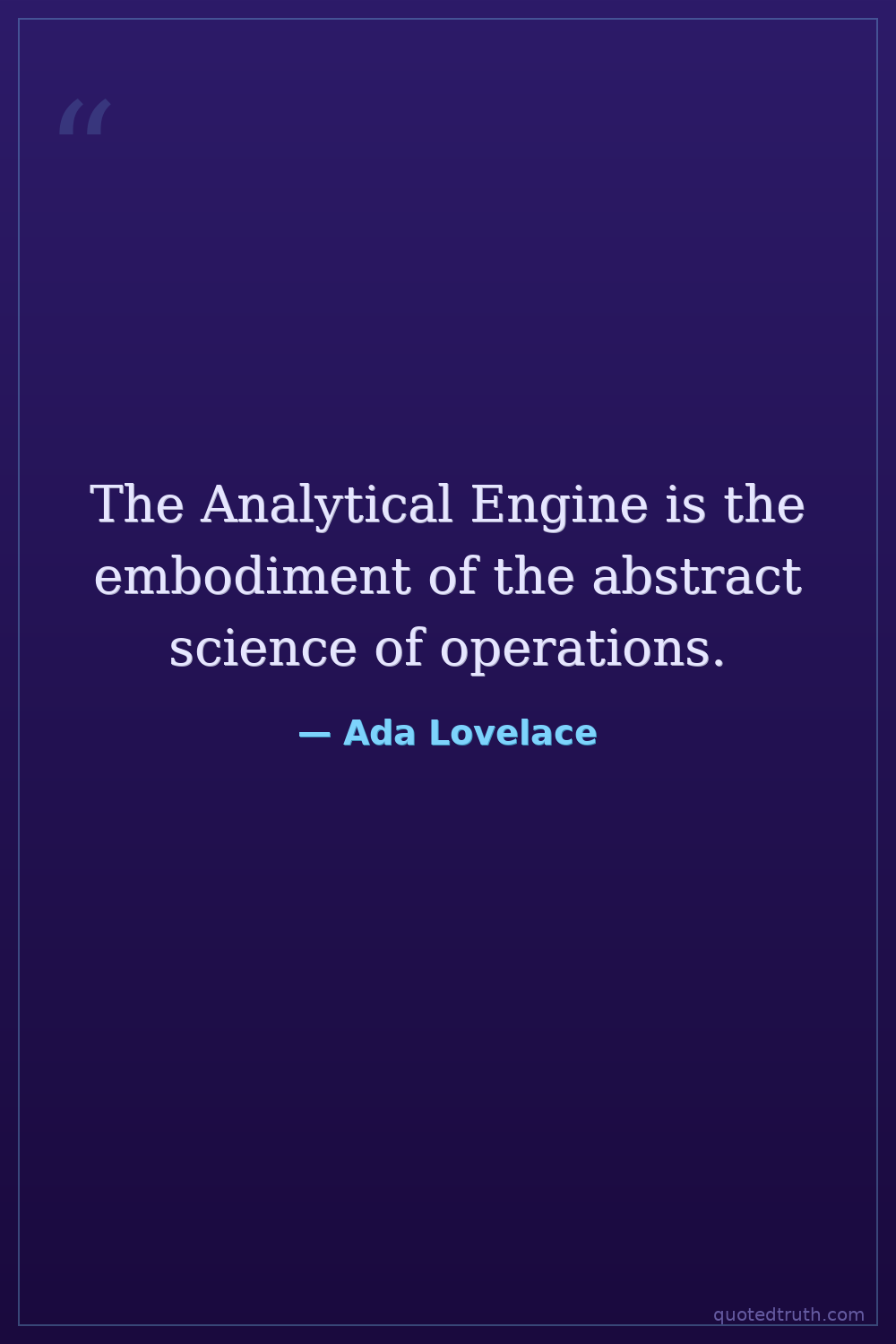 The Analytical Engine is the embodiment of the abstract science of operations.