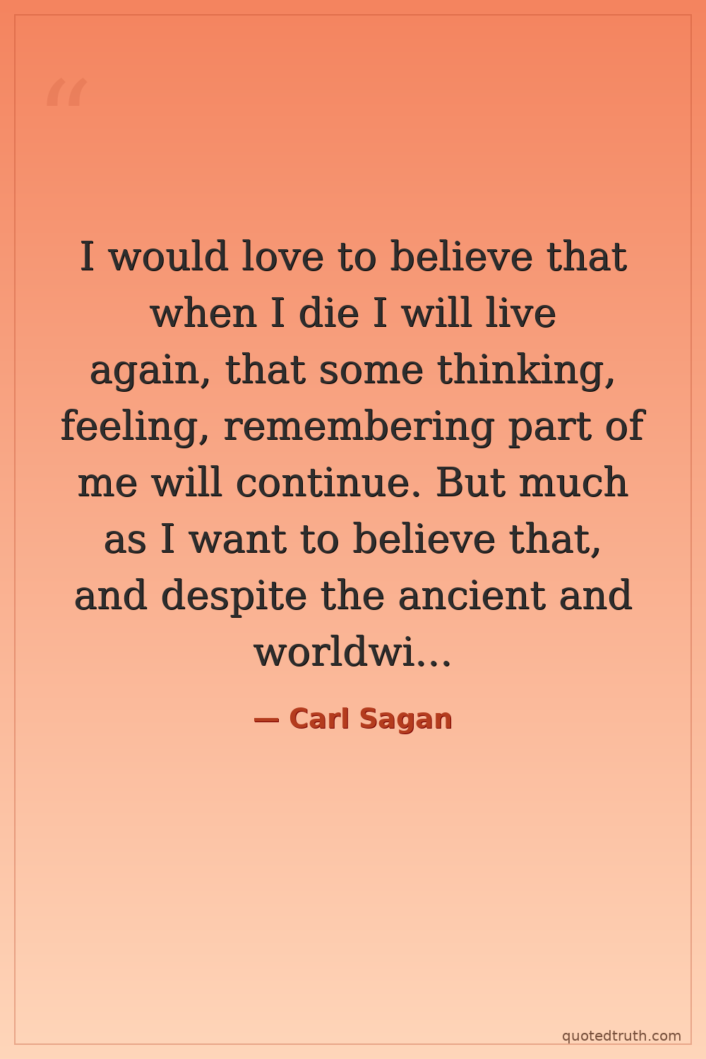 I would love to believe that when I die I will live again, that some thinking, feeling, remembering part of me will continue. But much as I want to believe that, and despite the ancient and worldwide cultural traditions that assert an afterlife, I know of nothing to suggest that it is more than wishful thinking.