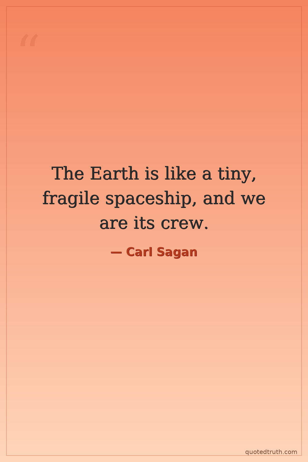The Earth is like a tiny, fragile spaceship, and we are its crew.