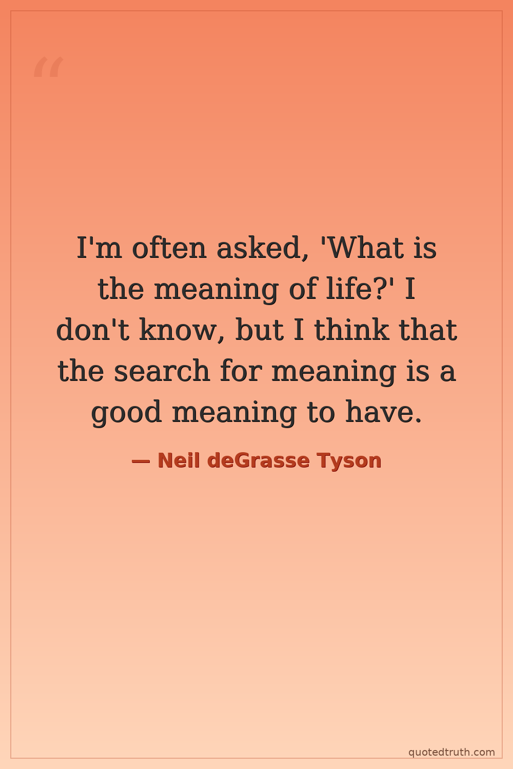 I'm often asked, 'What is the meaning of life?' I don't know, but I think that the search for meaning is a good meaning to have.