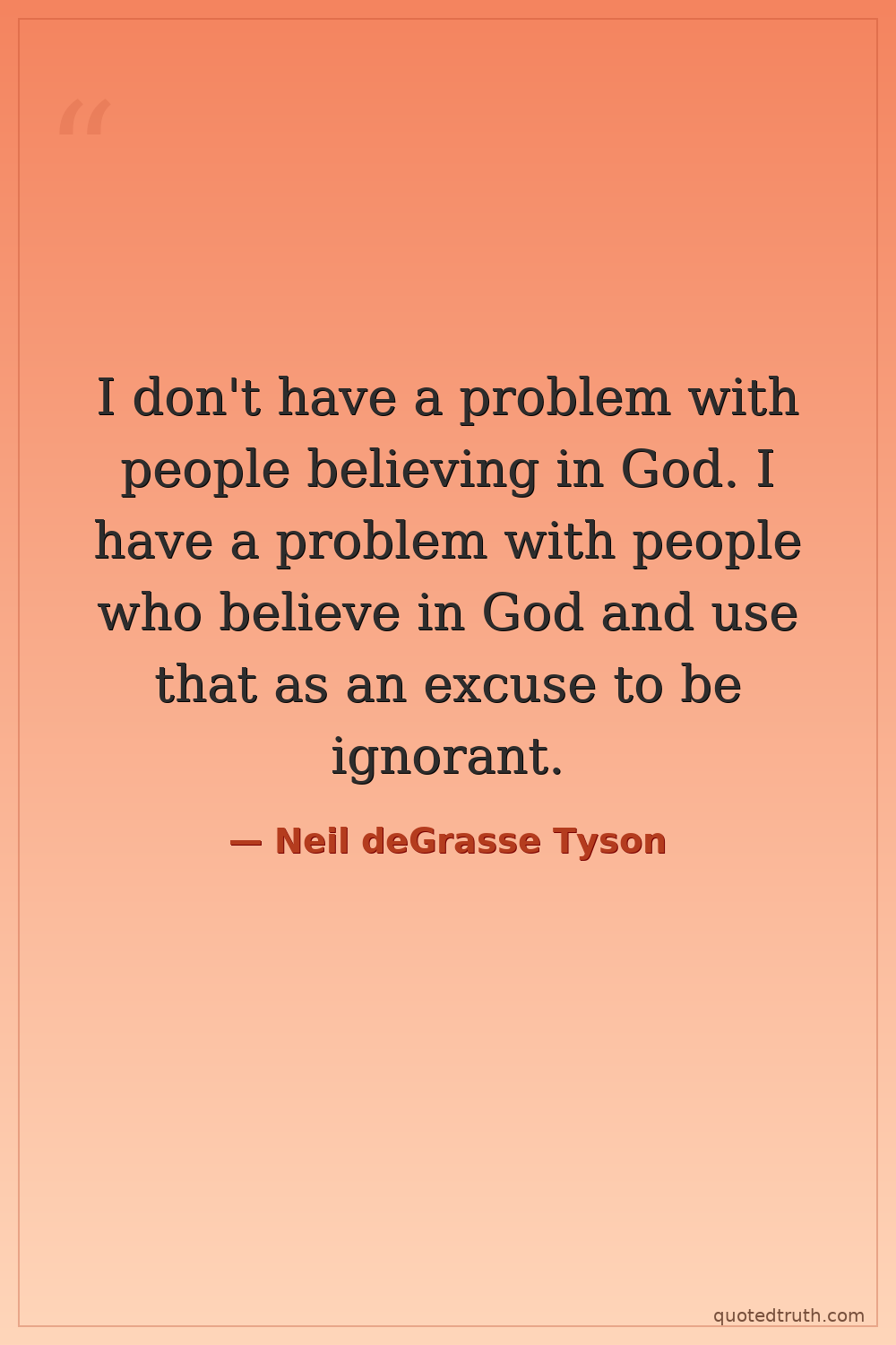I don't have a problem with people believing in God. I have a problem with people who believe in God and use that as an excuse to be ignorant.