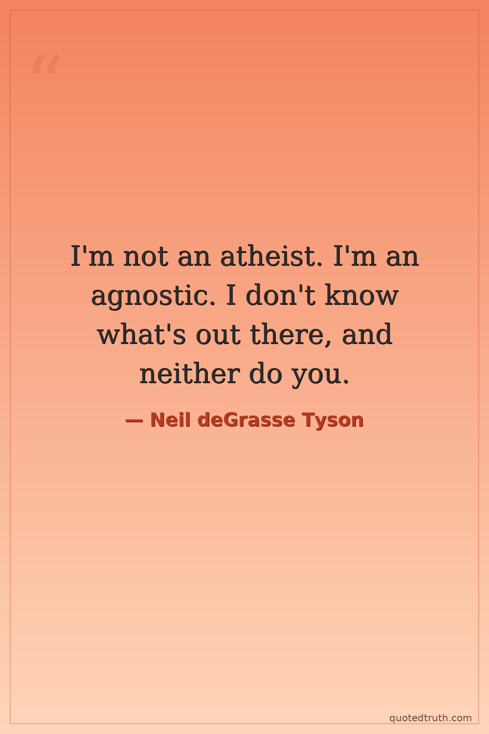 I'm not an atheist. I'm an agnostic. I don't know what's out there, and neither do you.