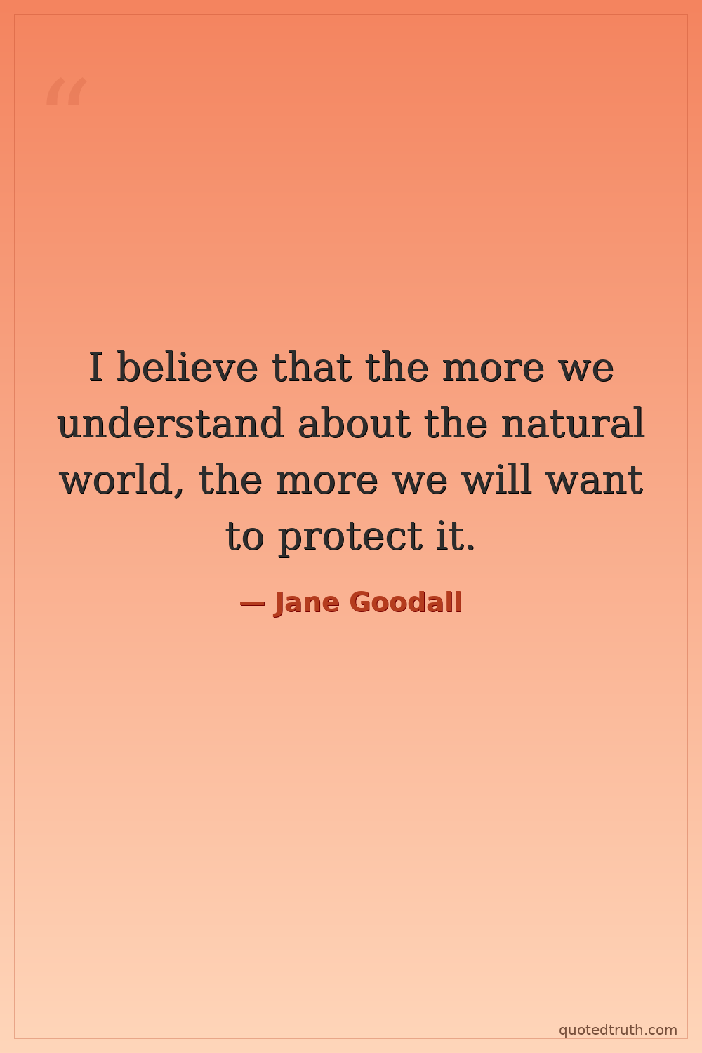 I believe that the more we understand about the natural world, the more we will want to protect it.