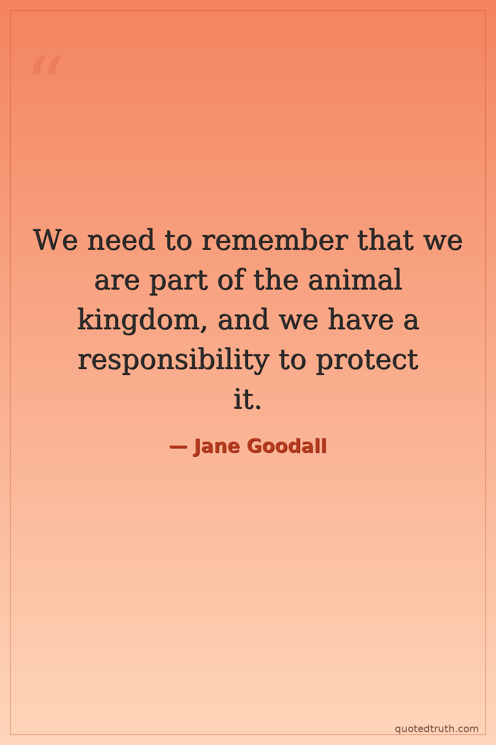 We need to remember that we are part of the animal kingdom, and we have a responsibility to protect it.