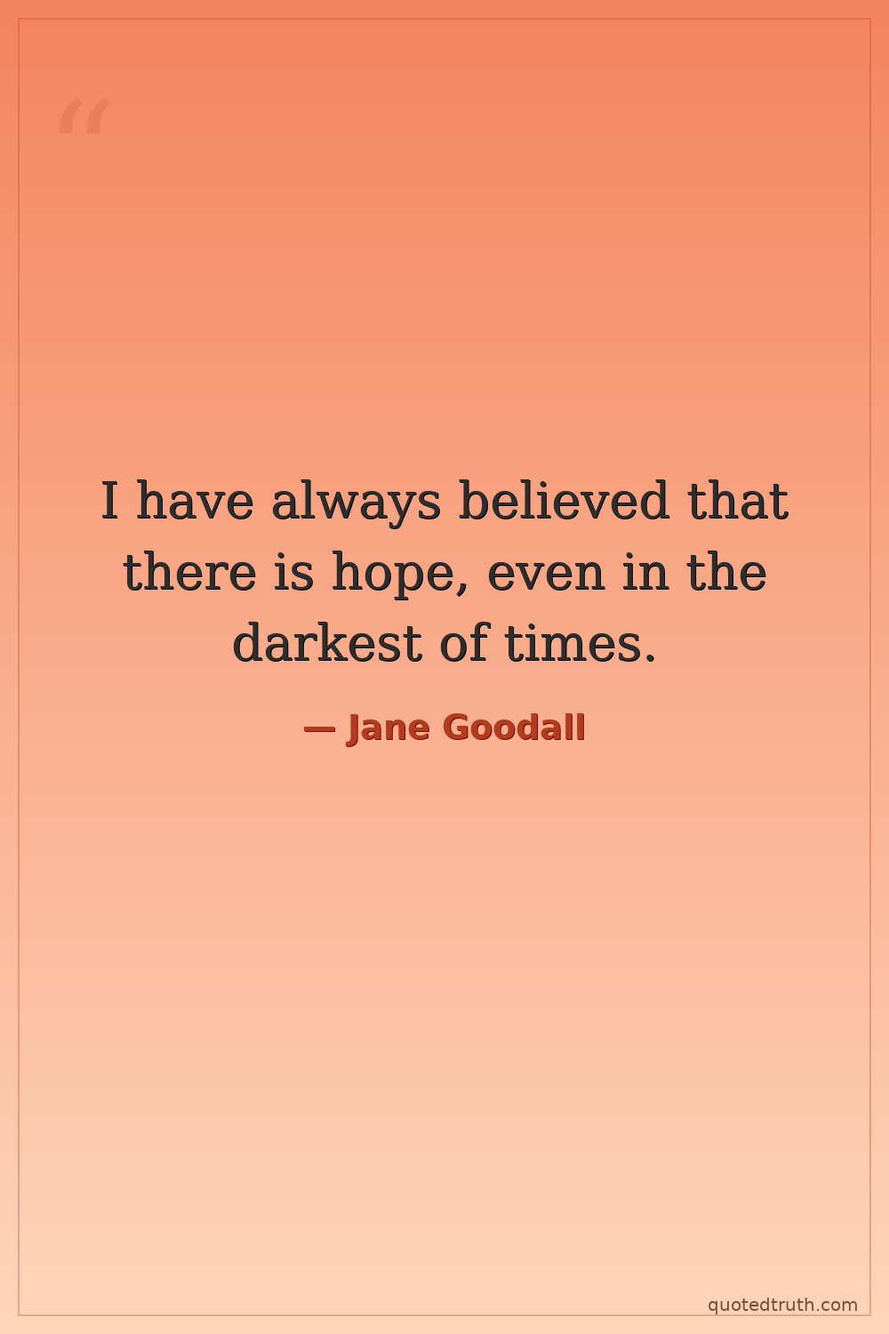 I have always believed that there is hope, even in the darkest of times.