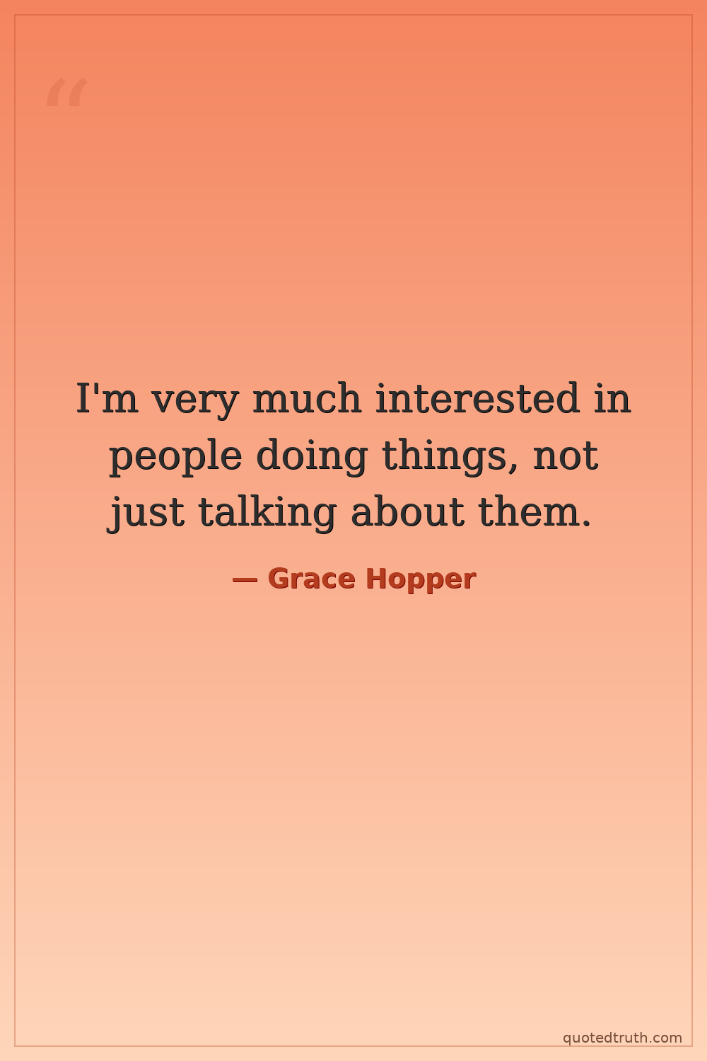 I'm very much interested in people doing things, not just talking about them.