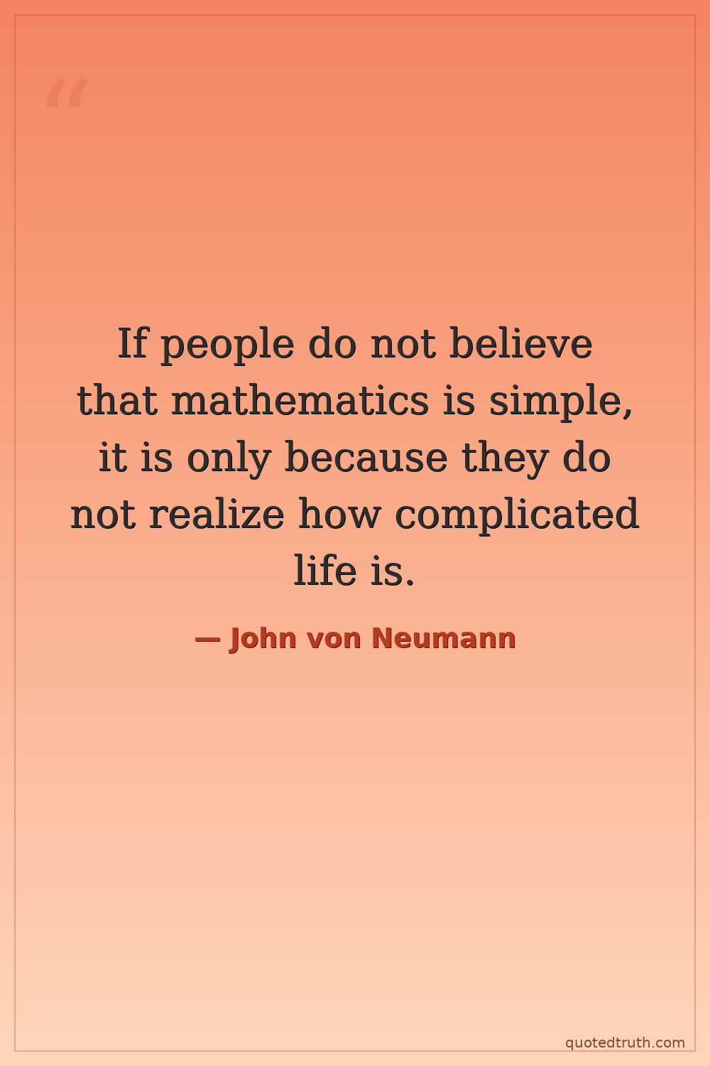 If people do not believe that mathematics is simple, it is only because they do not realize how complicated life is.