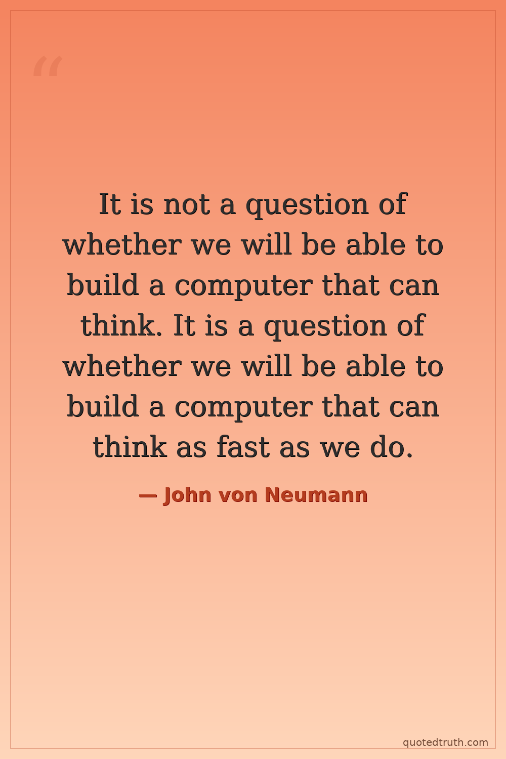 It is not a question of whether we will be able to build a computer that can think. It is a question of whether we will be able to build a computer that can think as fast as we do.