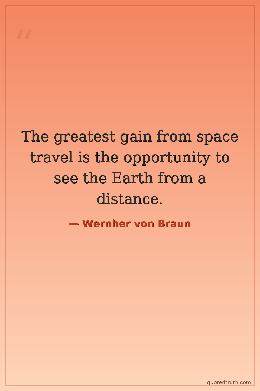 The greatest gain from space travel is the opportunity to see the Earth from a distance.