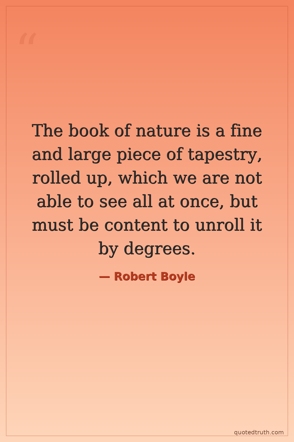 The book of nature is a fine and large piece of tapestry, rolled up, which we are not able to see all at once, but must be content to unroll it by degrees.