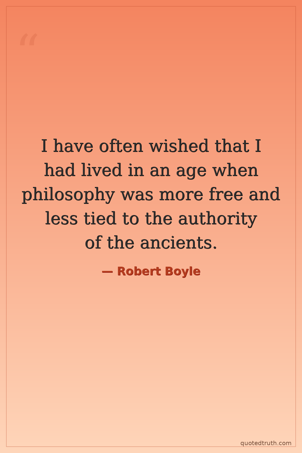 I have often wished that I had lived in an age when philosophy was more free and less tied to the authority of the ancients.