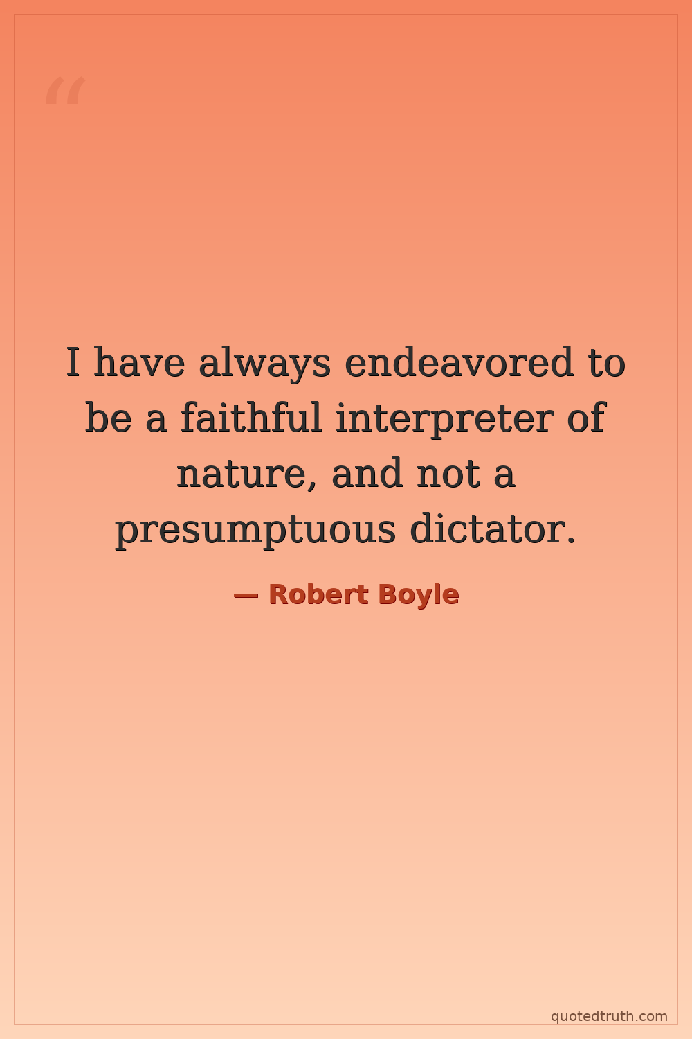 I have always endeavored to be a faithful interpreter of nature, and not a presumptuous dictator.