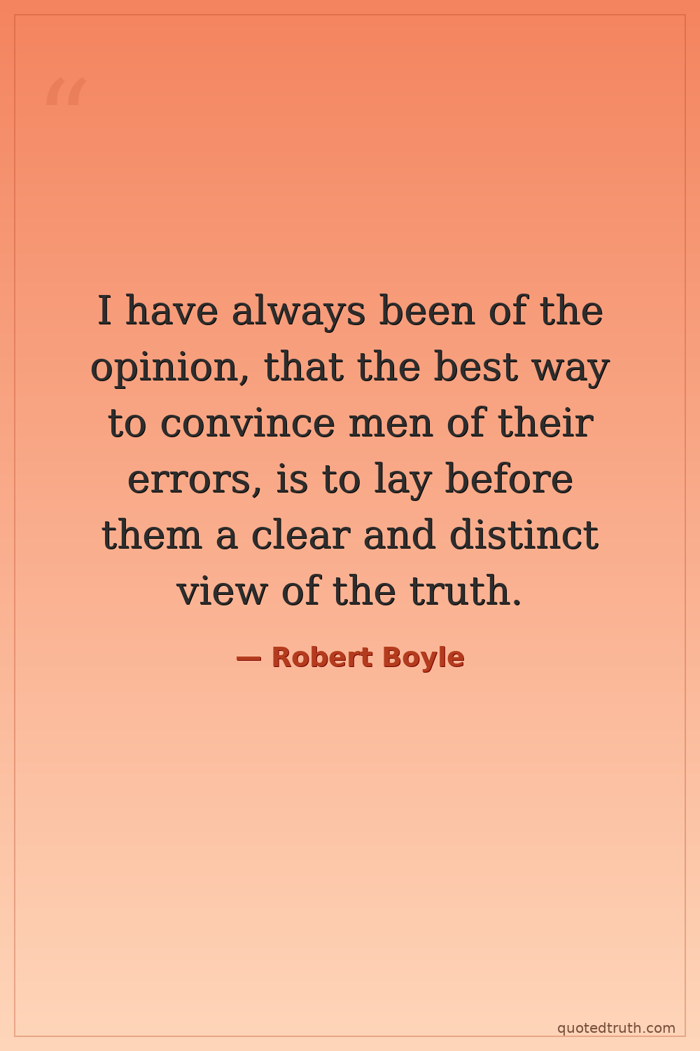 I have always been of the opinion, that the best way to convince men of their errors, is to lay before them a clear and distinct view of the truth.