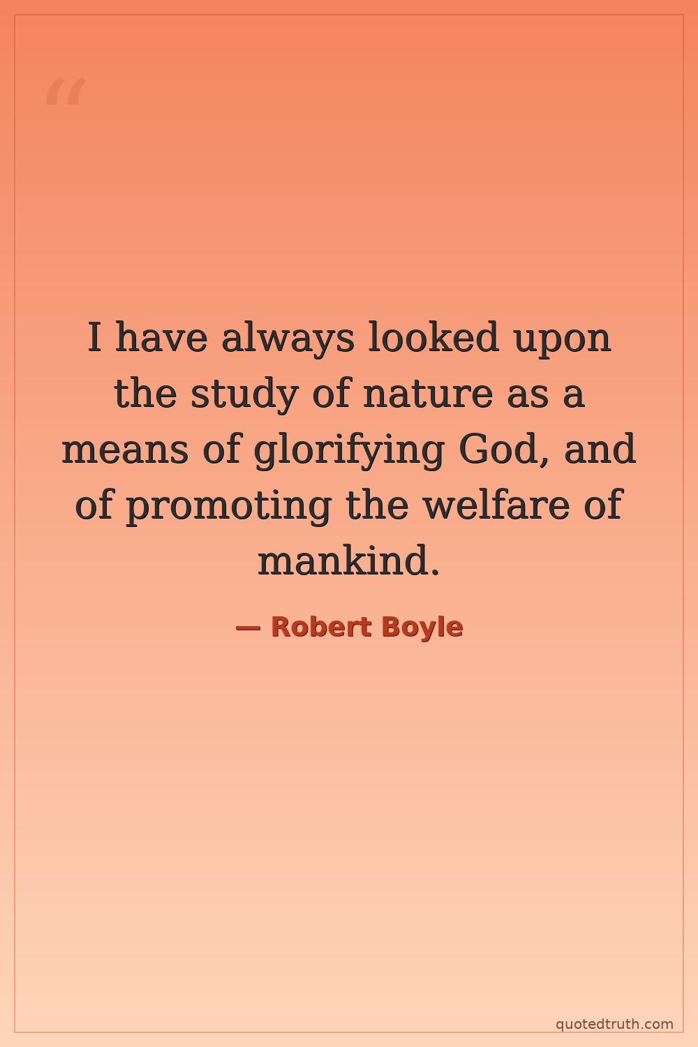 I have always looked upon the study of nature as a means of glorifying God, and of promoting the welfare of mankind.