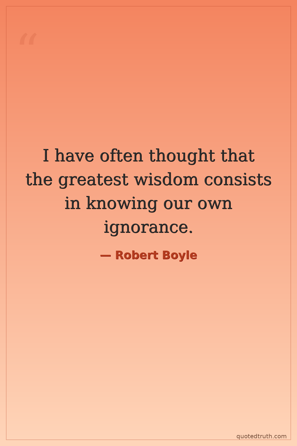 I have often thought that the greatest wisdom consists in knowing our own ignorance.