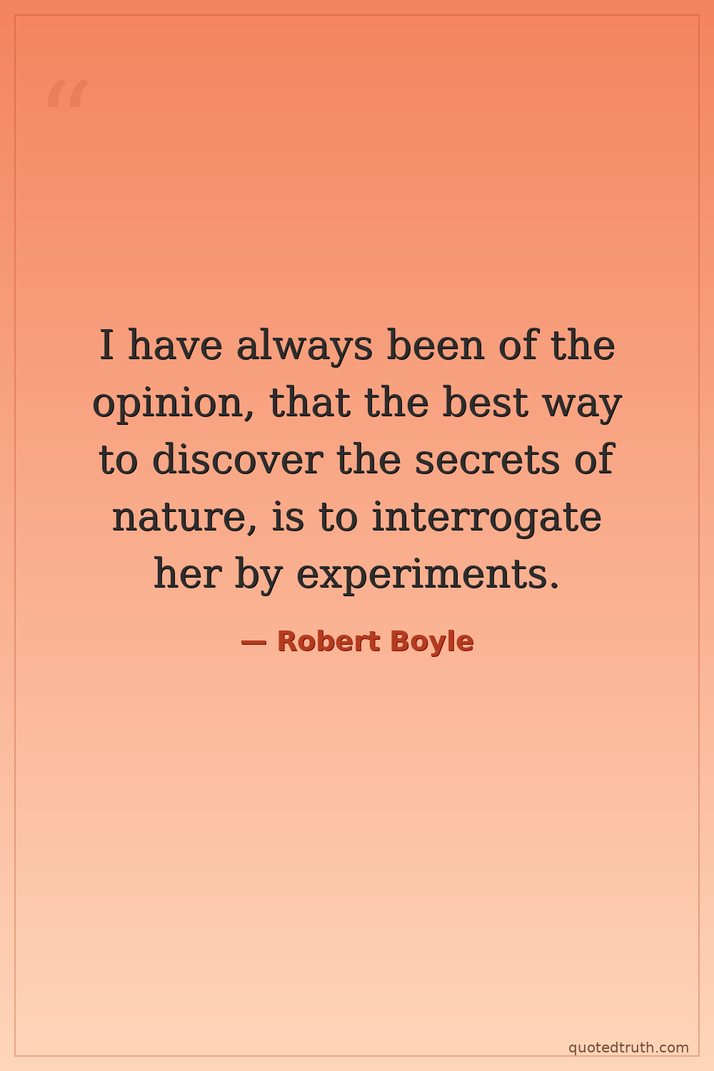 I have always been of the opinion, that the best way to discover the secrets of nature, is to interrogate her by experiments.