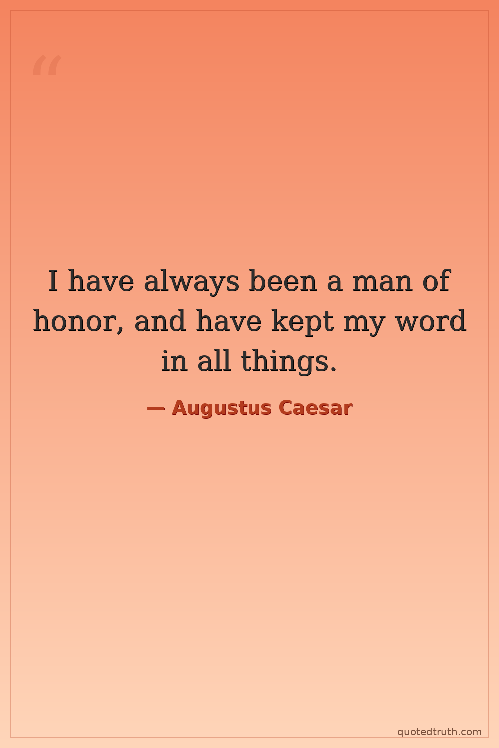 I have always been a man of honor, and have kept my word in all things.