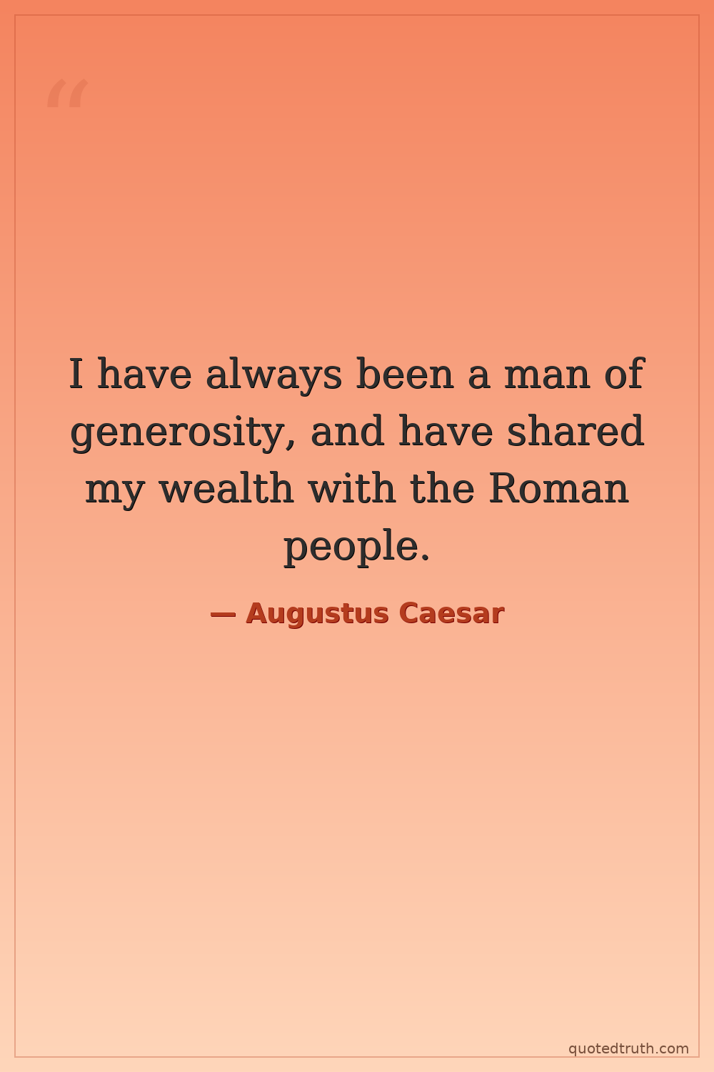 I have always been a man of generosity, and have shared my wealth with the Roman people.