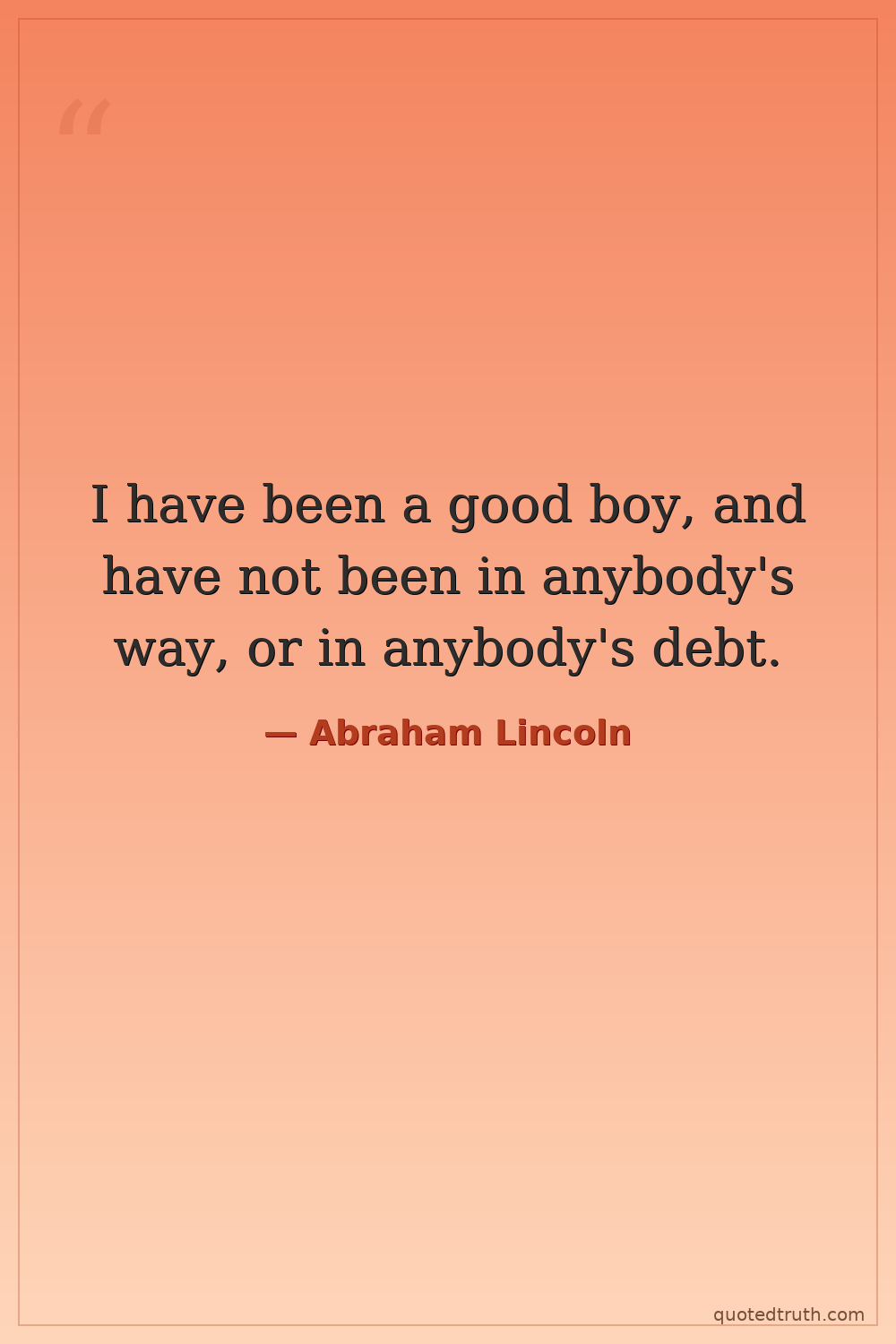 I have been a good boy, and have not been in anybody's way, or in anybody's debt.