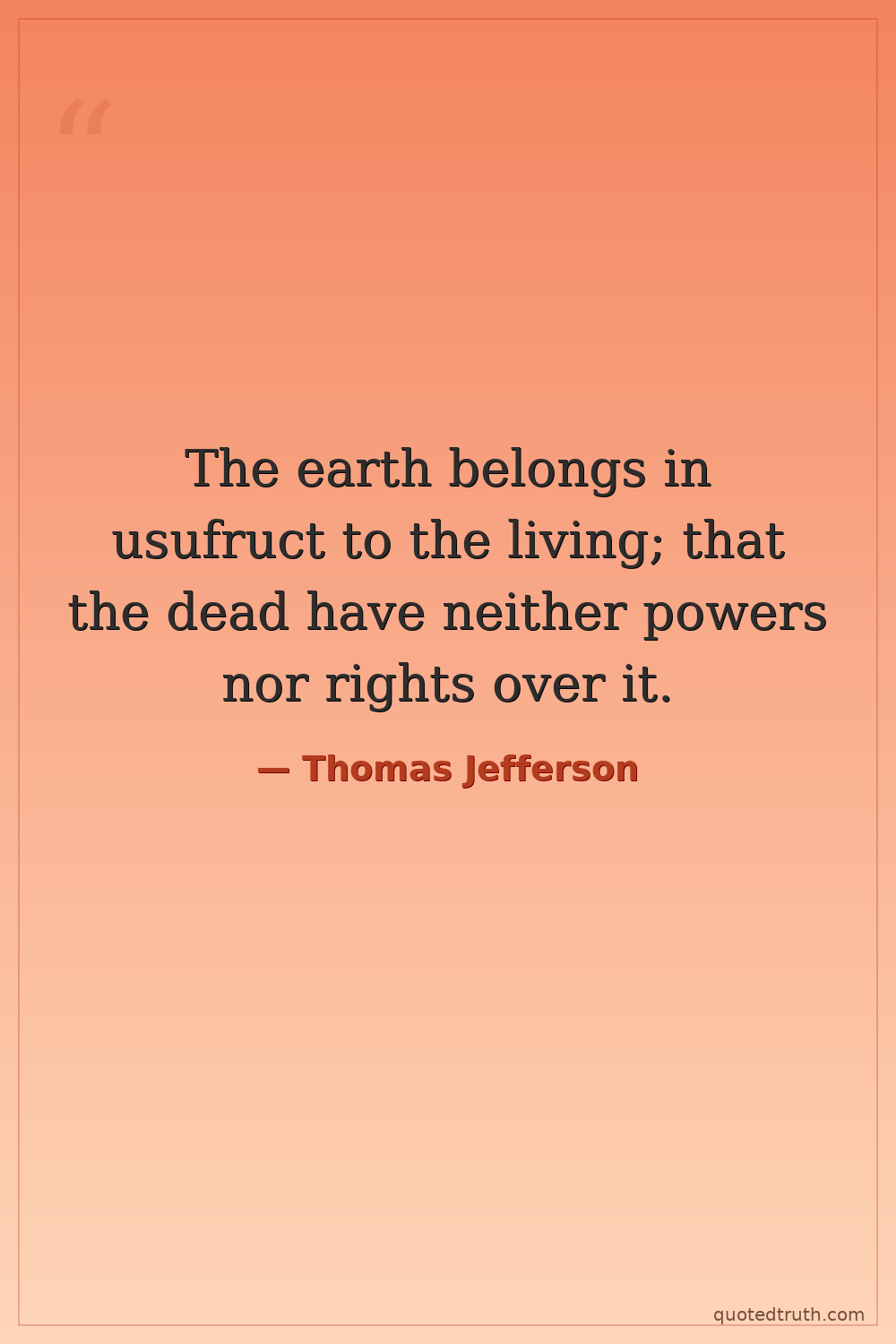 The earth belongs in usufruct to the living; that the dead have neither powers nor rights over it.