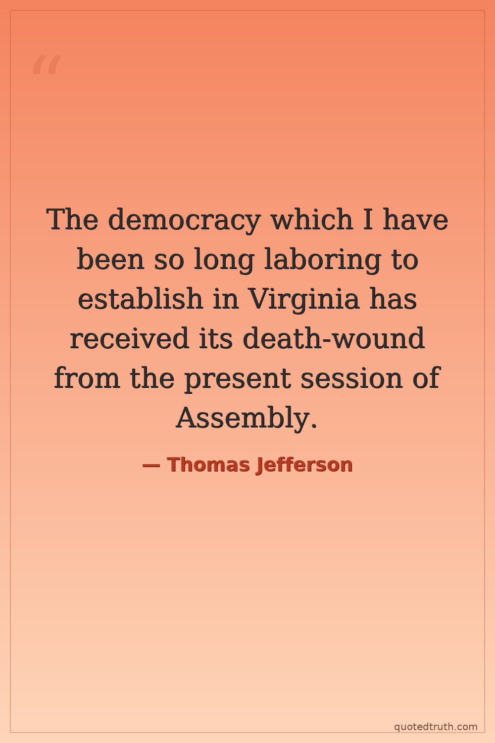 The democracy which I have been so long laboring to establish in Virginia has received its death-wound from the present session of Assembly.
