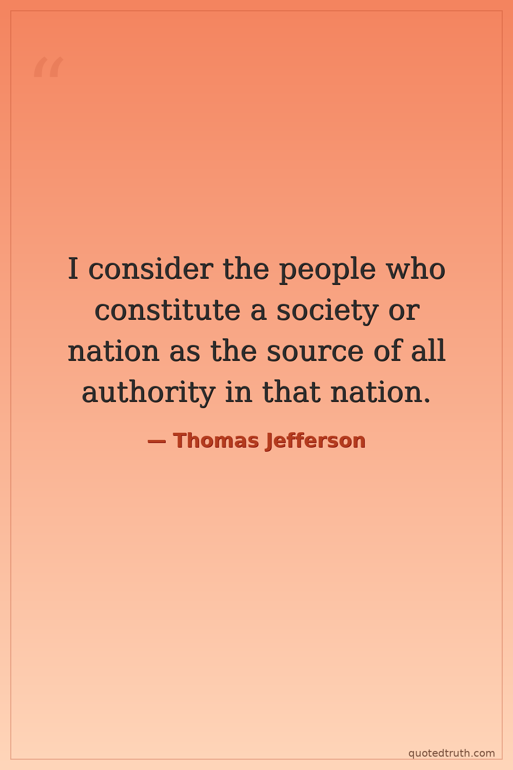 I consider the people who constitute a society or nation as the source of all authority in that nation.