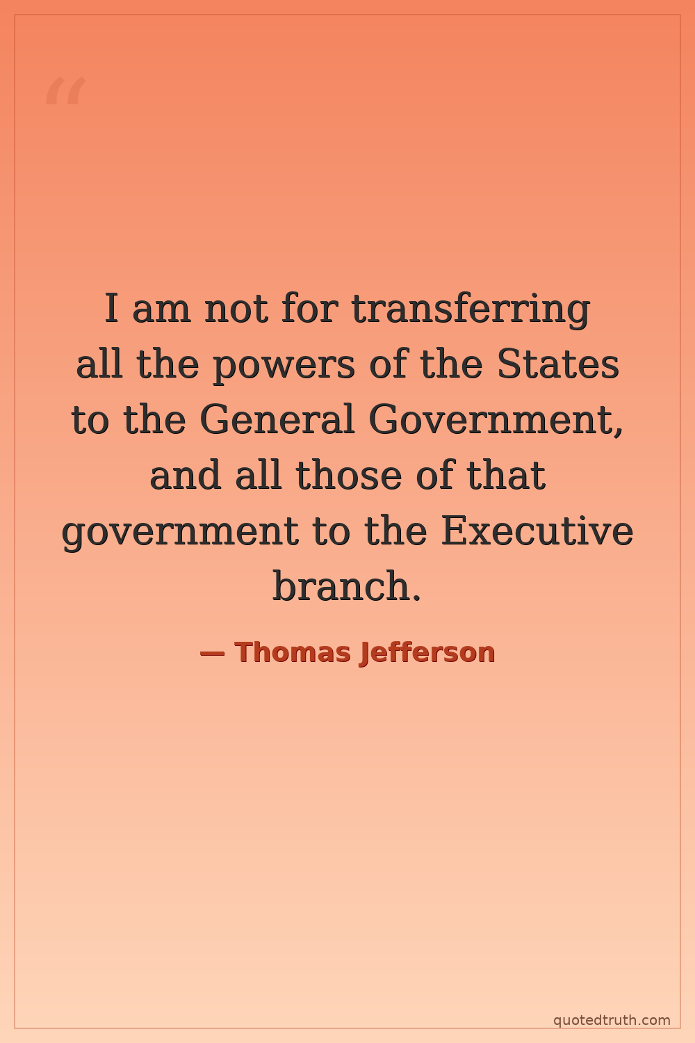I am not for transferring all the powers of the States to the General Government, and all those of that government to the Executive branch.