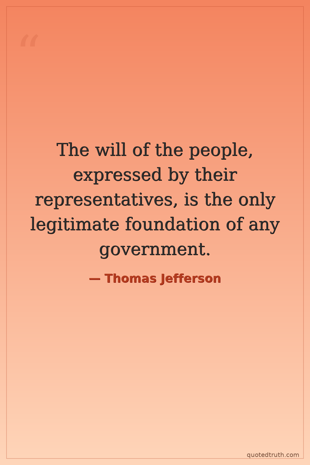 The will of the people, expressed by their representatives, is the only legitimate foundation of any government.